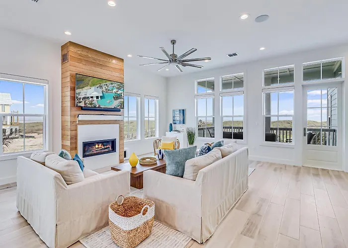 **Palmilla Amore Port Aransas** is a sublime oasis nestled along the beautiful coastline of Texas. Just 65 kilometers from Corpus Christi International Airport, this stunning getaway effortlessly combines the charm of coastal life with the luxury of modern accommodations. Guests are welcomed by an inviting atmosphere highlighted by the holiday home's exquisite architecture and lush landscaping, setting the tone for a memorable escape.